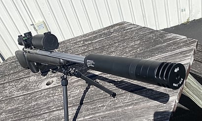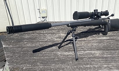 Tikka 7mm prc, 8 flutes, fitted with magnum suppressor and muzzle brake cap
